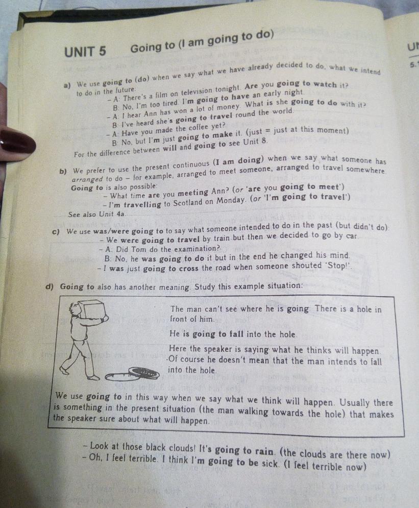b) Мы предпочитаем использовать настоящий непрерывный (я делаю ) когда мы говорим о том, что кто-то договорился сделать - например, договорились о встрече с кем-то, договорились о поездке, можно пойти: - Во сколько вы встречаетесь с Энн? (или «ты собираешься встретиться») - Я еду в Шотландию в понедельник. (или я собираюсь путешествовать) См. также Раздел 4a