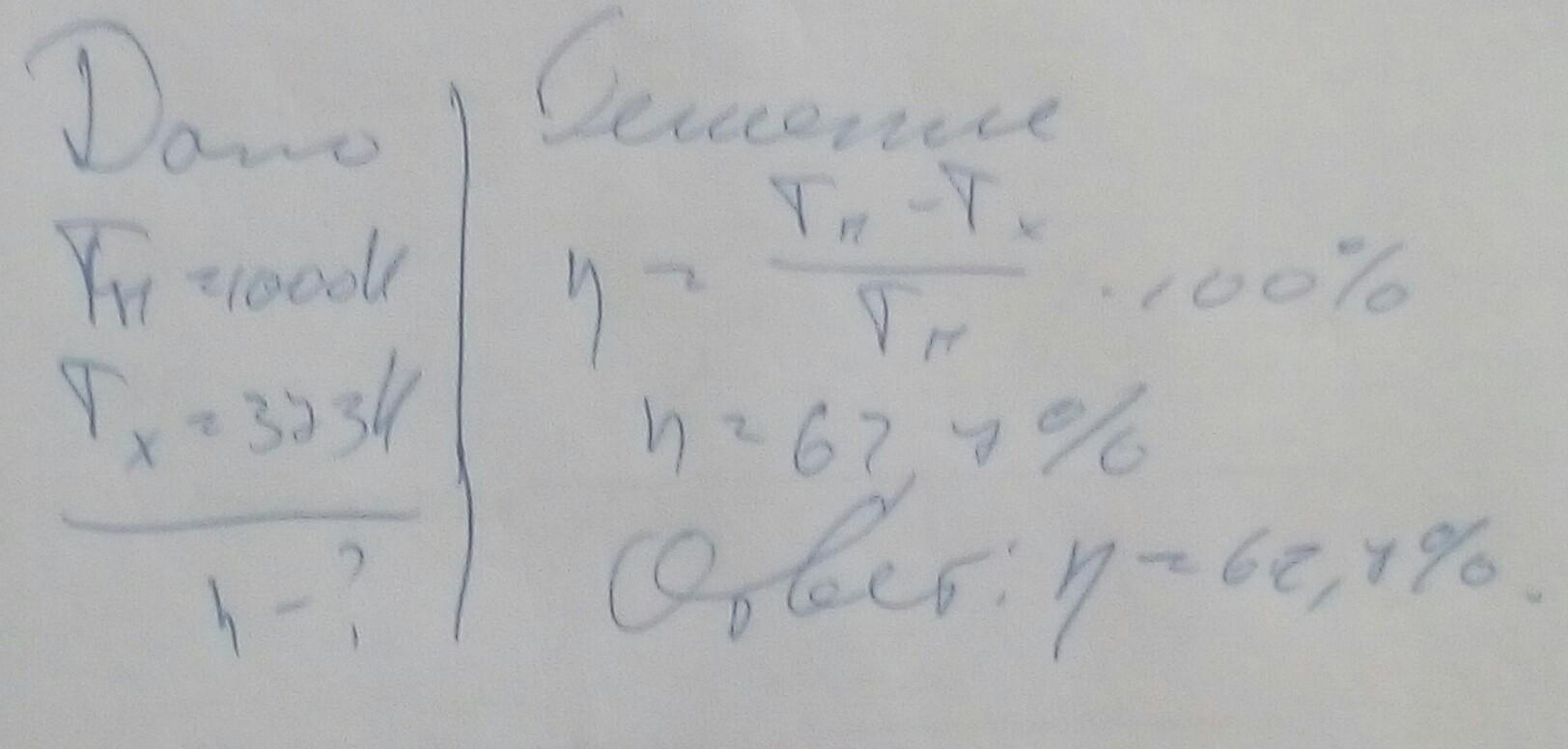 Чему равен КПД идеального теплового двигателя, если температура нагревателя 1000 К, а температура холодильника 100°C