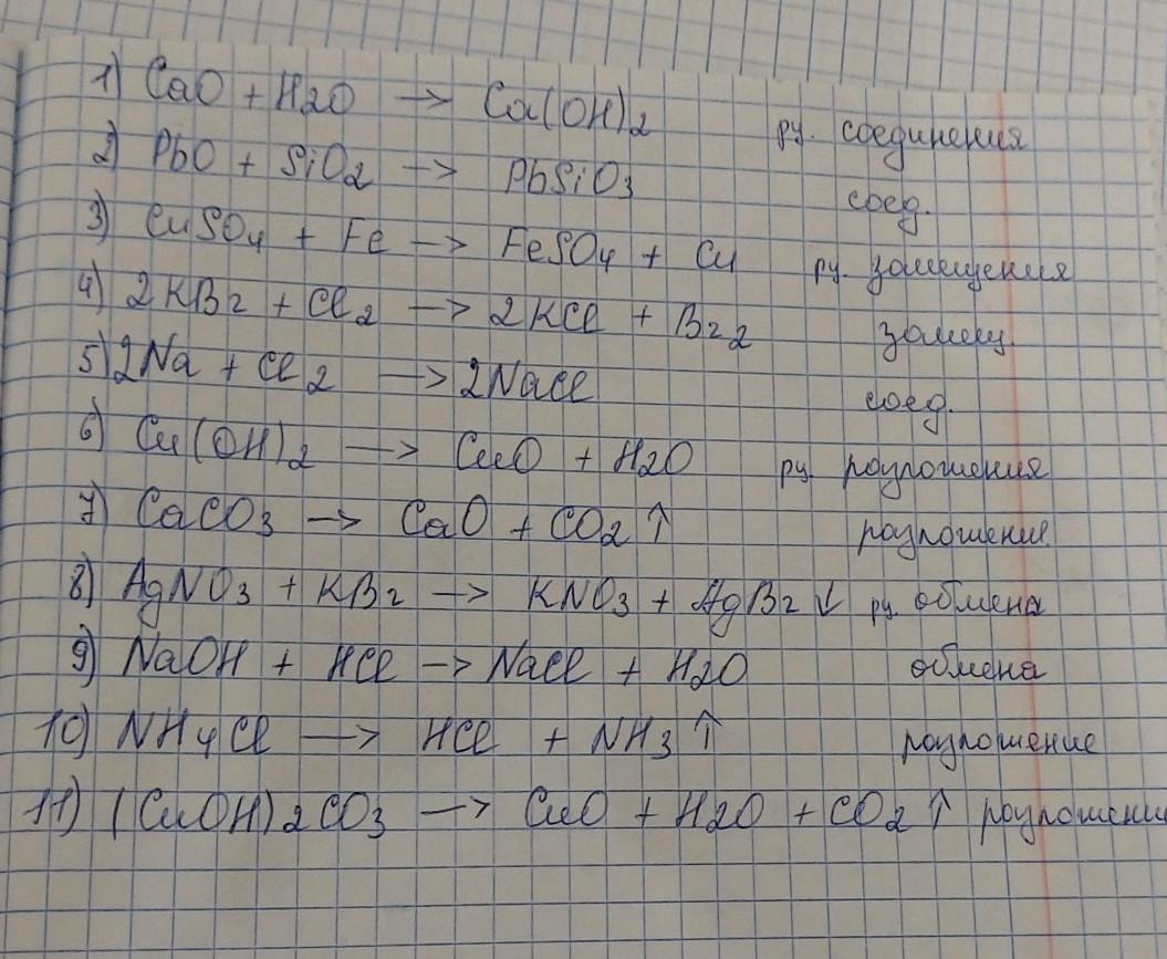 1) CaO+H2O = Ca(OH)2 рц.соединения