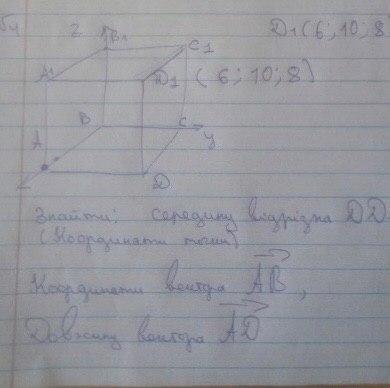координаты середины отрезка DD₁ (6;10;4)