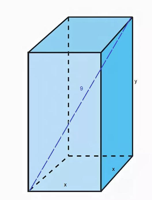 если в основании квадрат со стороной х, высота у, то по т пифагора для диагонали d