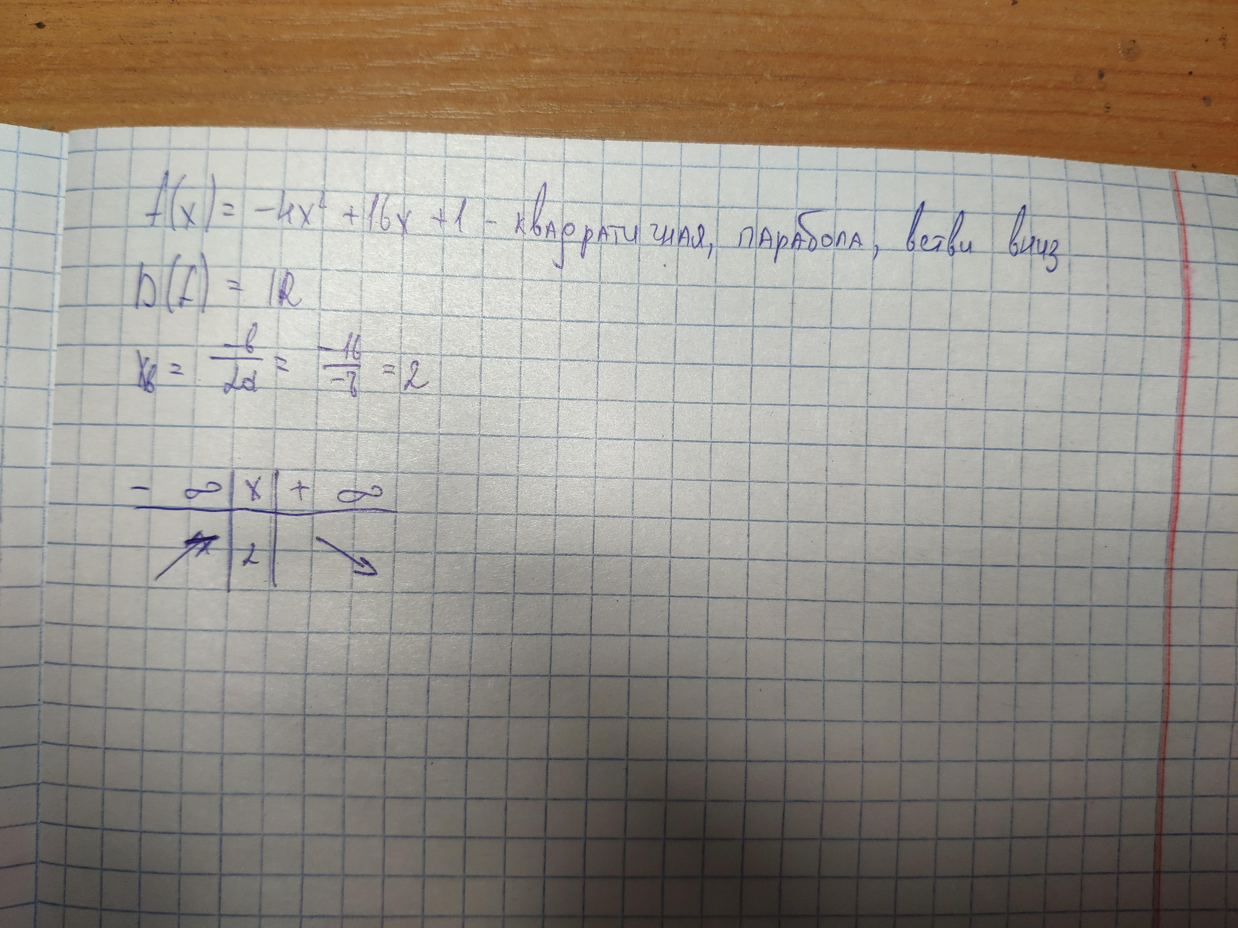 Возрастает функция на (-∞;2], убывает на [2;+∞)