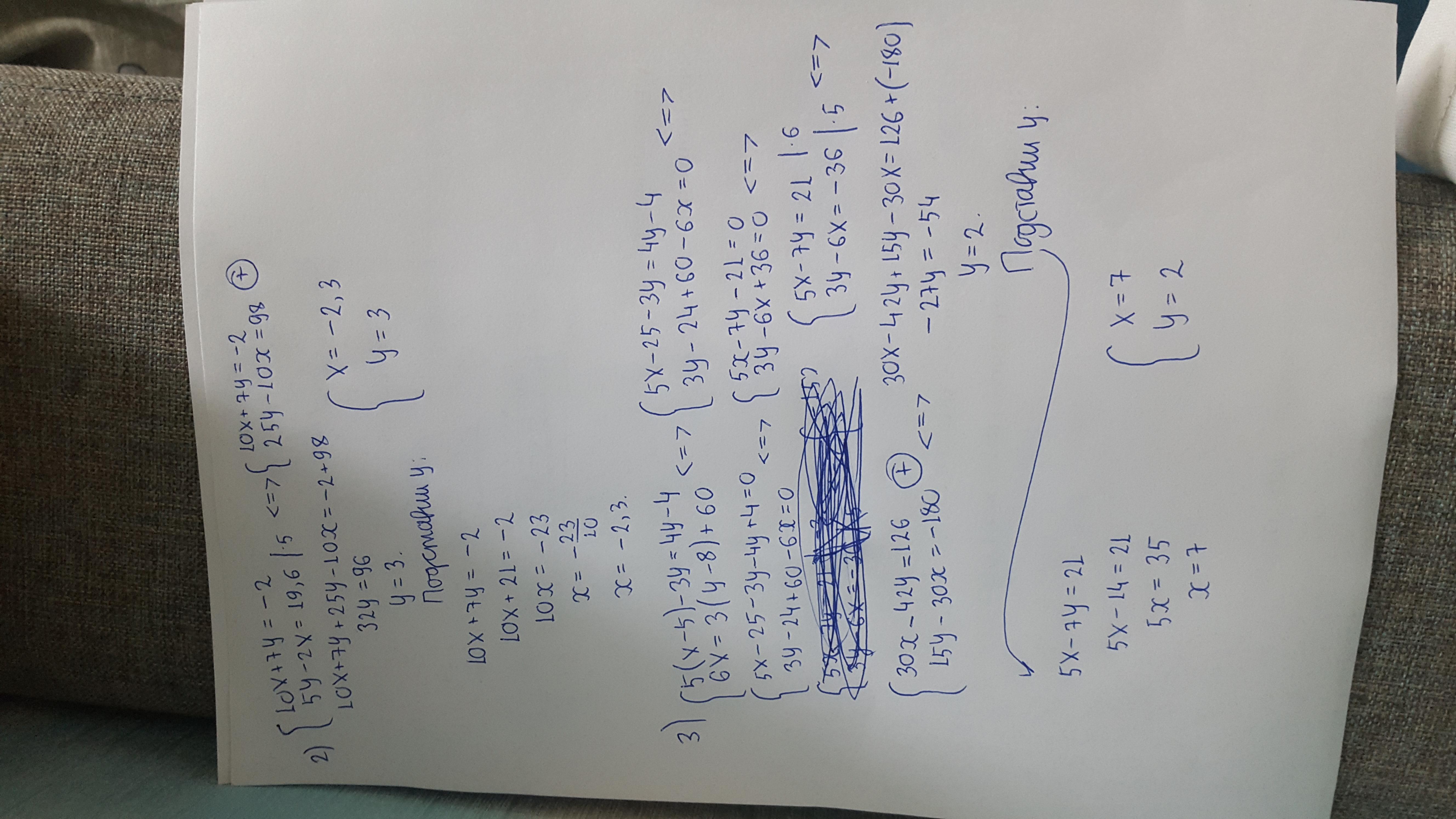 б) {10x+7y=-2