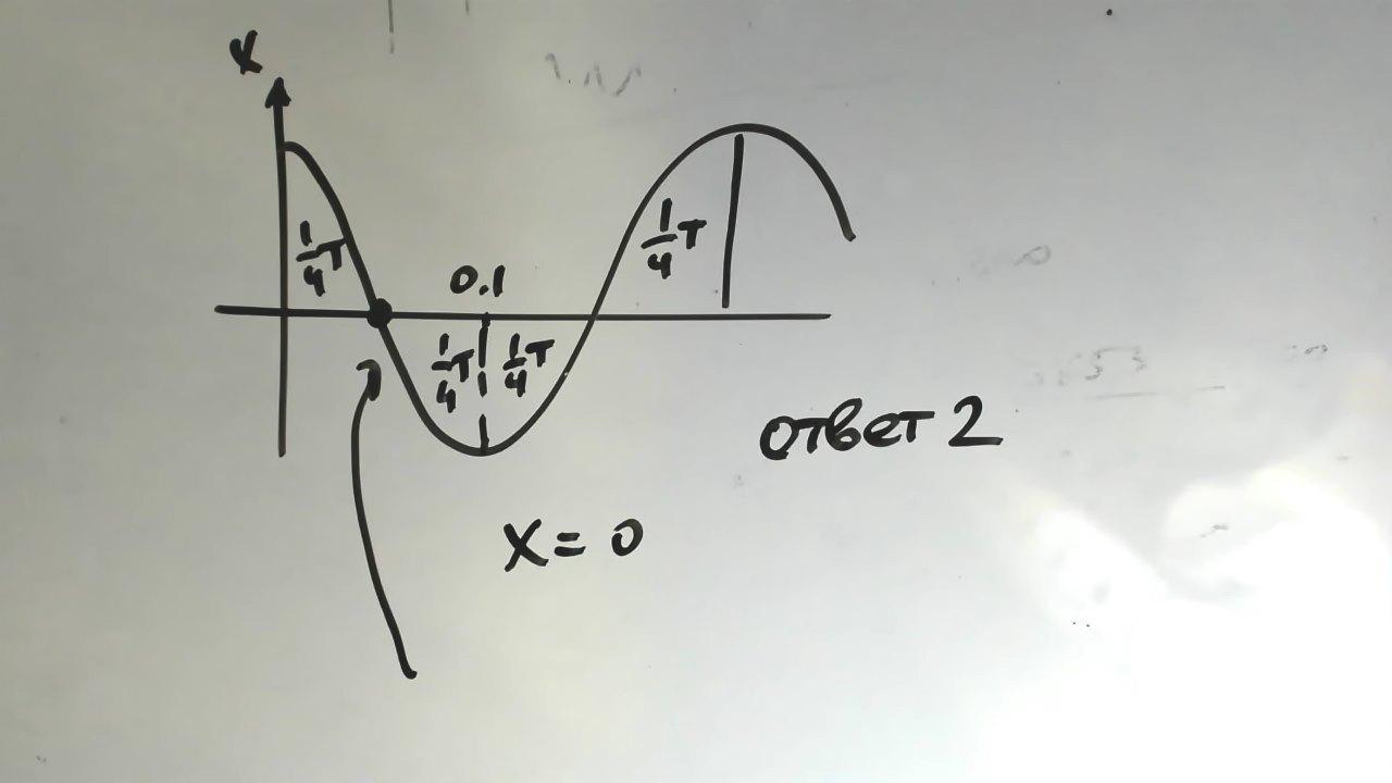 На рисунке изображен график гармонических колебаний с периодом колебаний Т. При t = T/4 смещение тела от положения равновесия равно