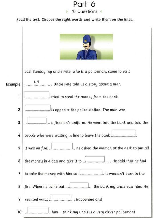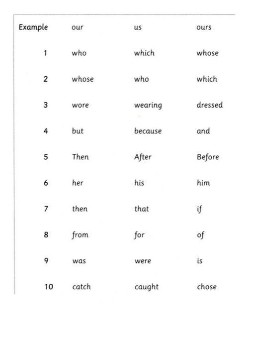 1 - who, 2 - which, 3 - wearing, 4 - because, 5 - Then, 6 - him, 7 - that, 8 - of, 9 - was, 10 - caught.