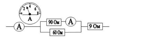 Дана схема соединения элементов и показание амперметра на неразветвленном участке цепи. Показания амперметра в разветвленной цепи: