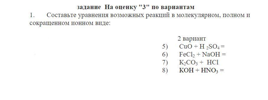 Помогите составить уравнение возможных реакций в молекулярном,полном и сокращенном ионном виде !!