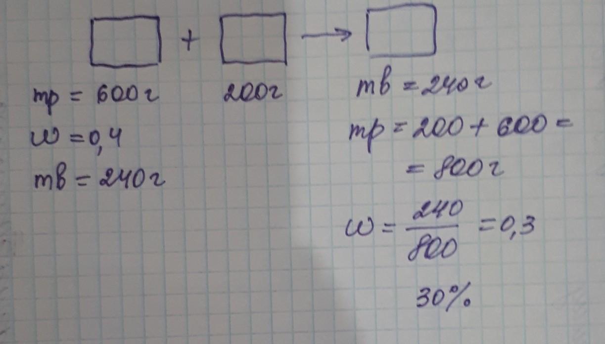 До 600 г 40% розчину натрію гідроксиду NaОН прилили 200 г води. Яка масова частка (у відсотках) NaОН у розчині?