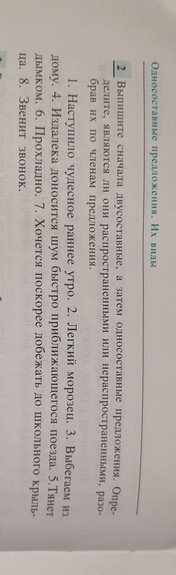 Выпишите сначала двусоставные затем односоставные предложения определите. Определите, являются ли они распространёнными или нераспространенными, разобрав их по членам предложения.