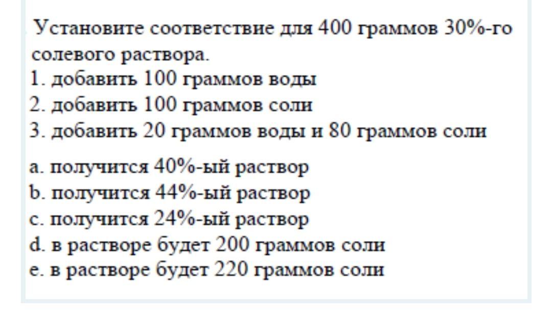 2. Якщо ж добавити 100 г солі, то зміниться і маса розчину і маса солі, тому ω=(100г+120г)/(400г+100г)=44%. Відповідь B