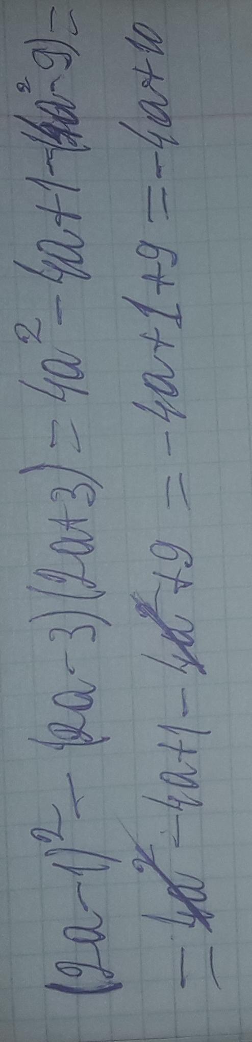 (2а – 1)^2 - (2а – 3)(2a+3)=4a^2-4a+1-4a^2+9=-4a+1+9=10-4a