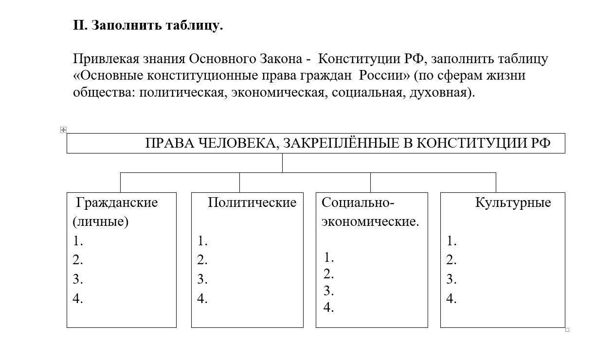 Политические права: избирать и быть избранным; на управление делами государства; на политические объединения; на политические убеждения.