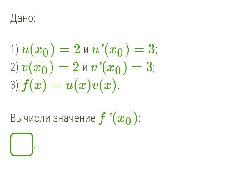 f'(x0) = u'(x0)*v(x0) + u(x0)*v'(x0) = 3*2 + 2*3 = 6 + 6 = 12