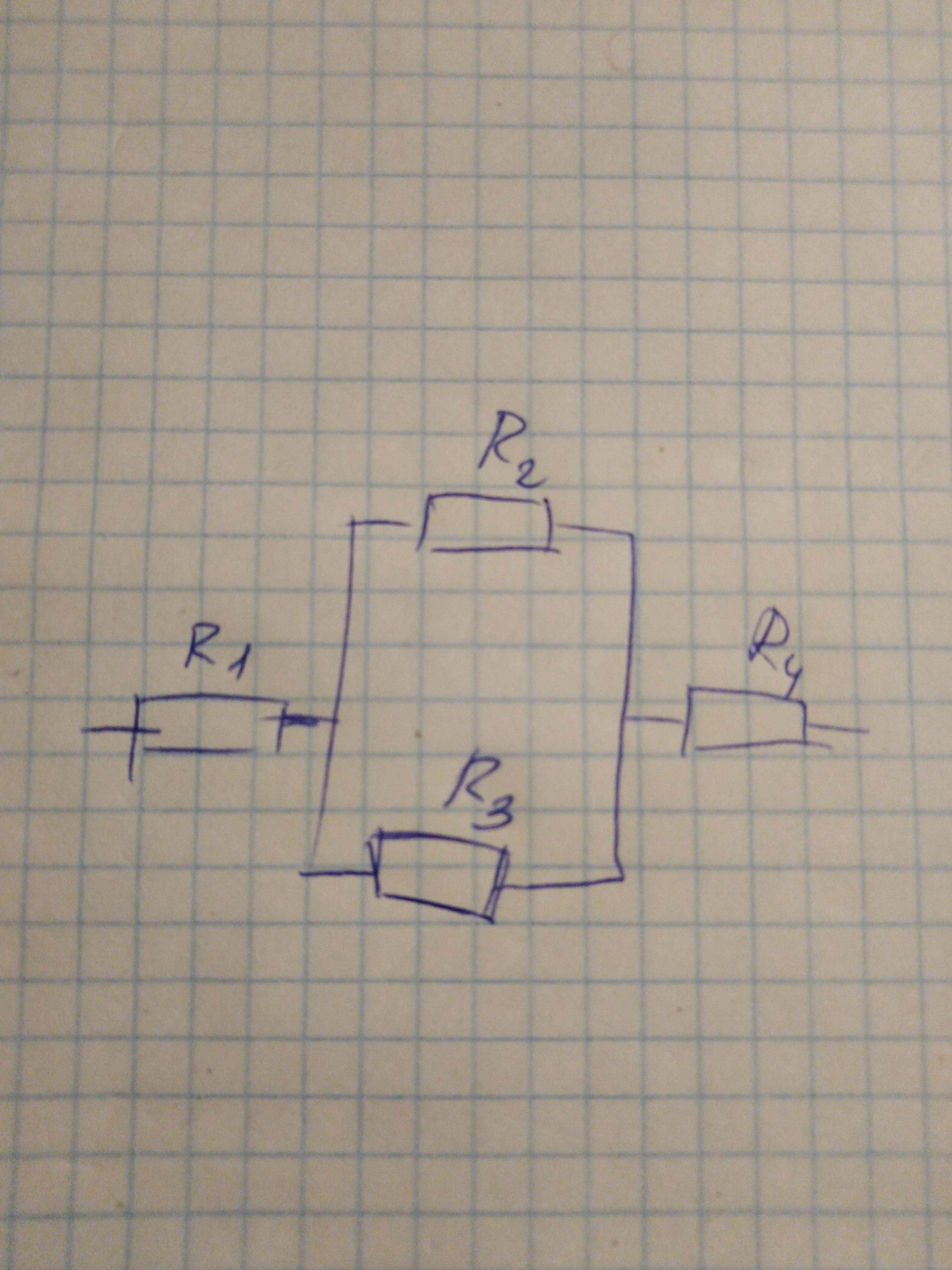 Суммарное сопротивление R₂₃=R₃R₂(R₃+R₂)=60/17 Ом, сила тока I₁=12 A, напряжение U₁=I₁R₁=48 B, I₂₃=I₂+I₃=12A, U₂₃=U₂=U₃=I₂₃R₂₃=720/17 В, I₂=U₂/R₂=60/17 A, I₃=U₃/R₃=144/17 A, U₄=I₁₂₃₄R₄=180 В