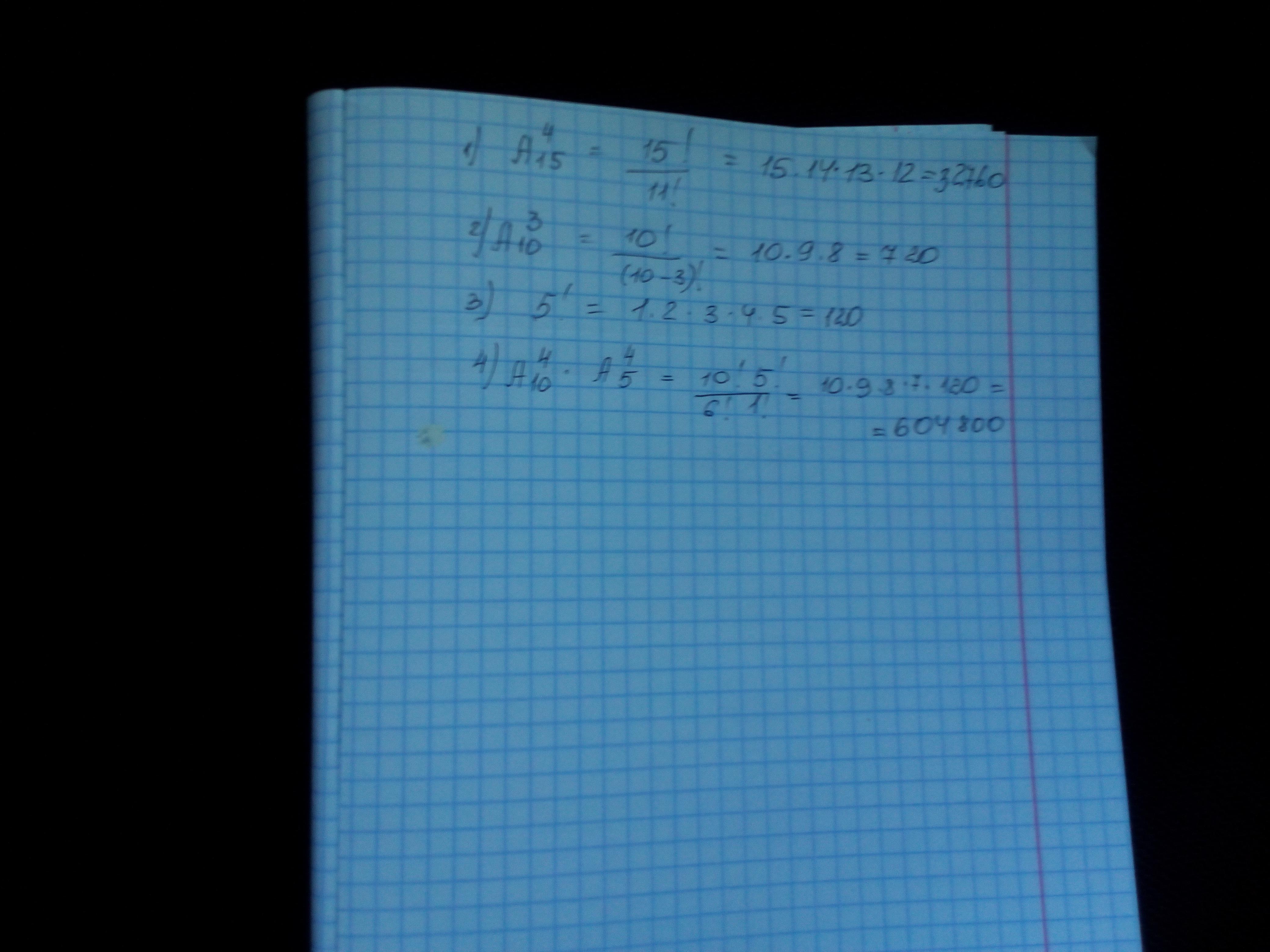 в алфавите 10 согласных и 5 гласных букв, а также 10 обычных цифр. Каким числом способов можно образовать следующей комбинации : 1) слово из четырёх разных букв, 2) число из трех разных цифр, 3)анаграмму слова лента, 4) восьмибуквенное слово из разных букв с чередующими гласными и согласными