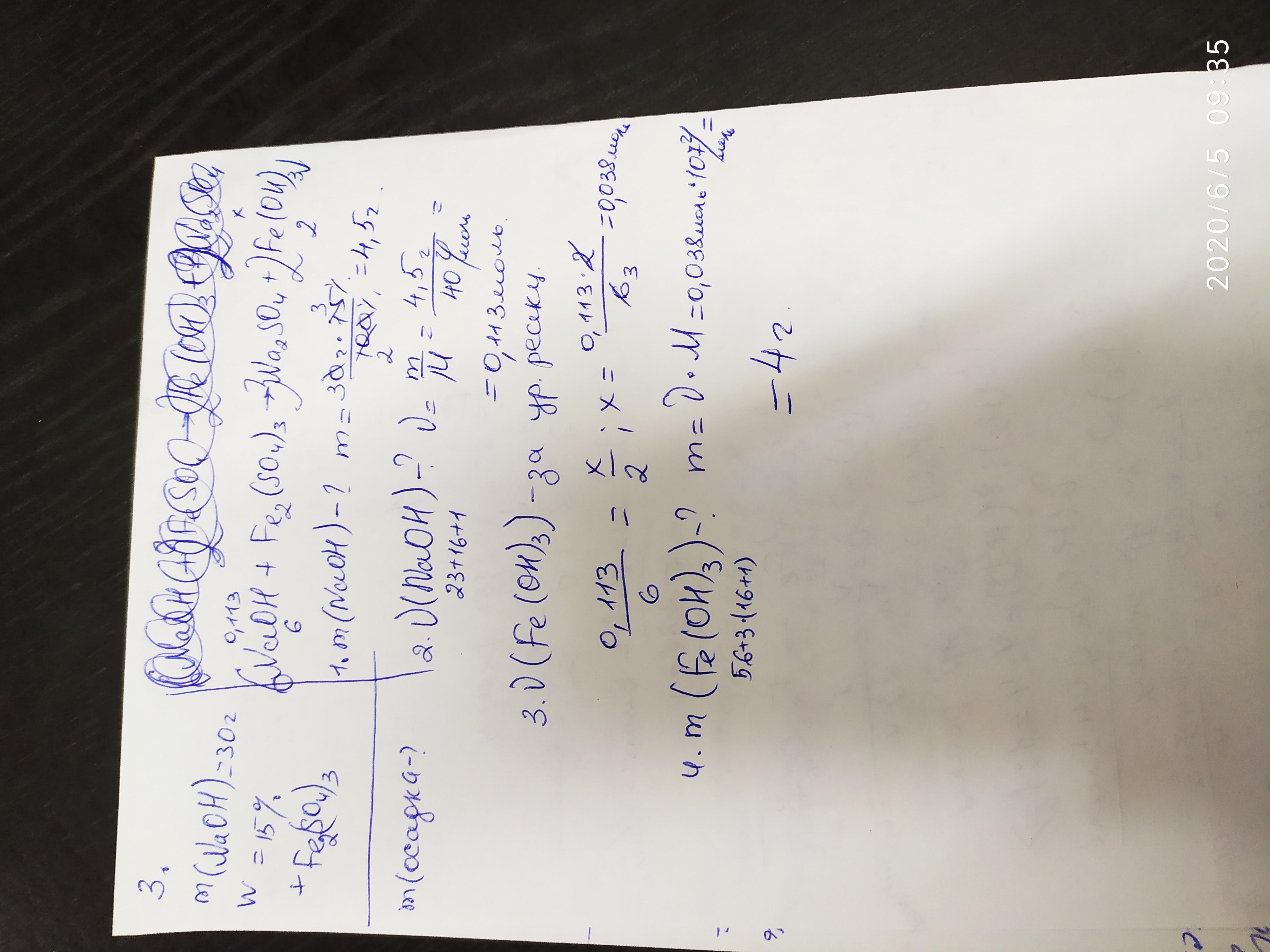 % раствора гидроксида натрия к сульфату железа (III). Ответ округлите