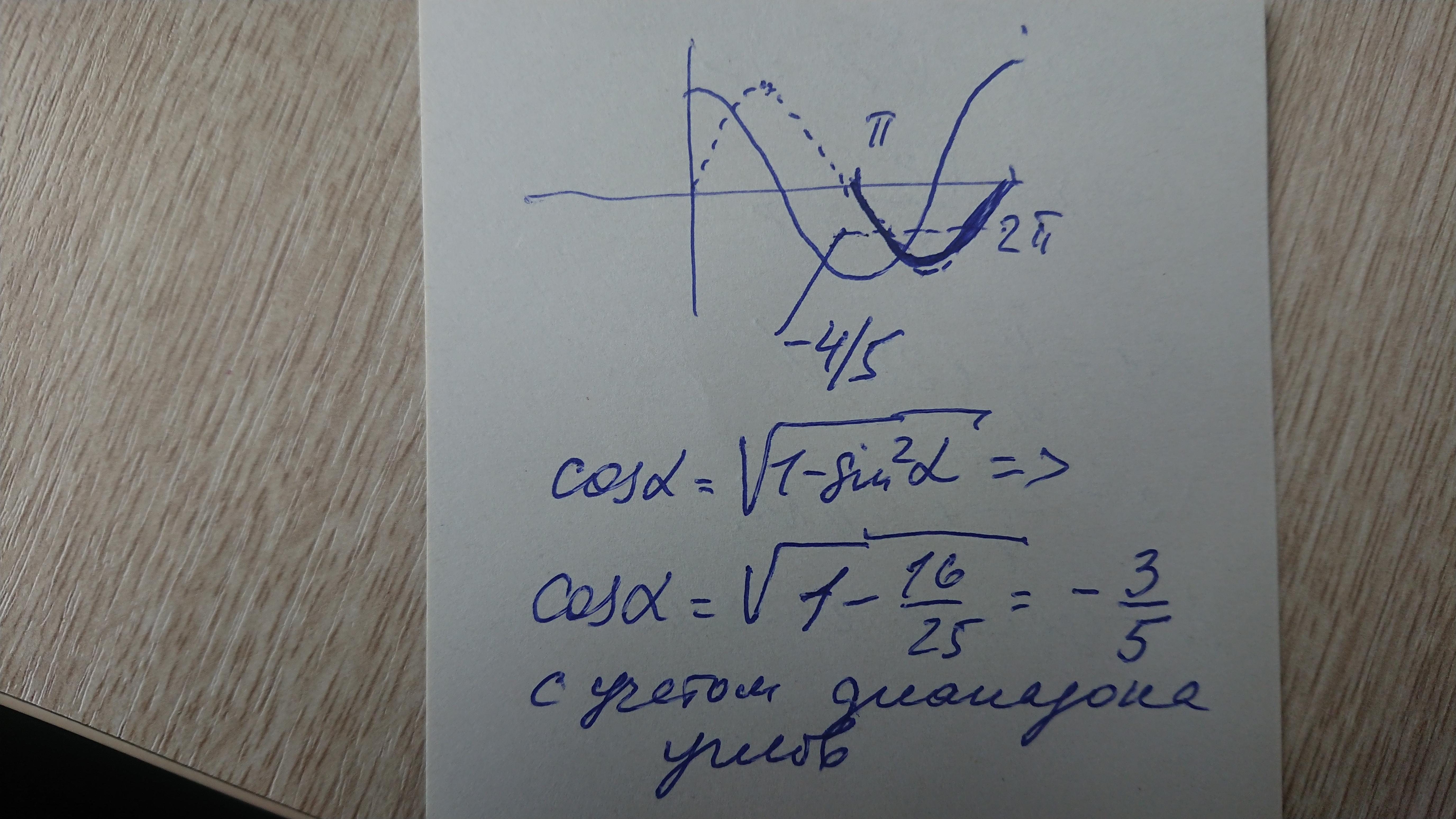 Найдите значение sin a, если известно, что cos a = -4/5 и a€[π/2;π]