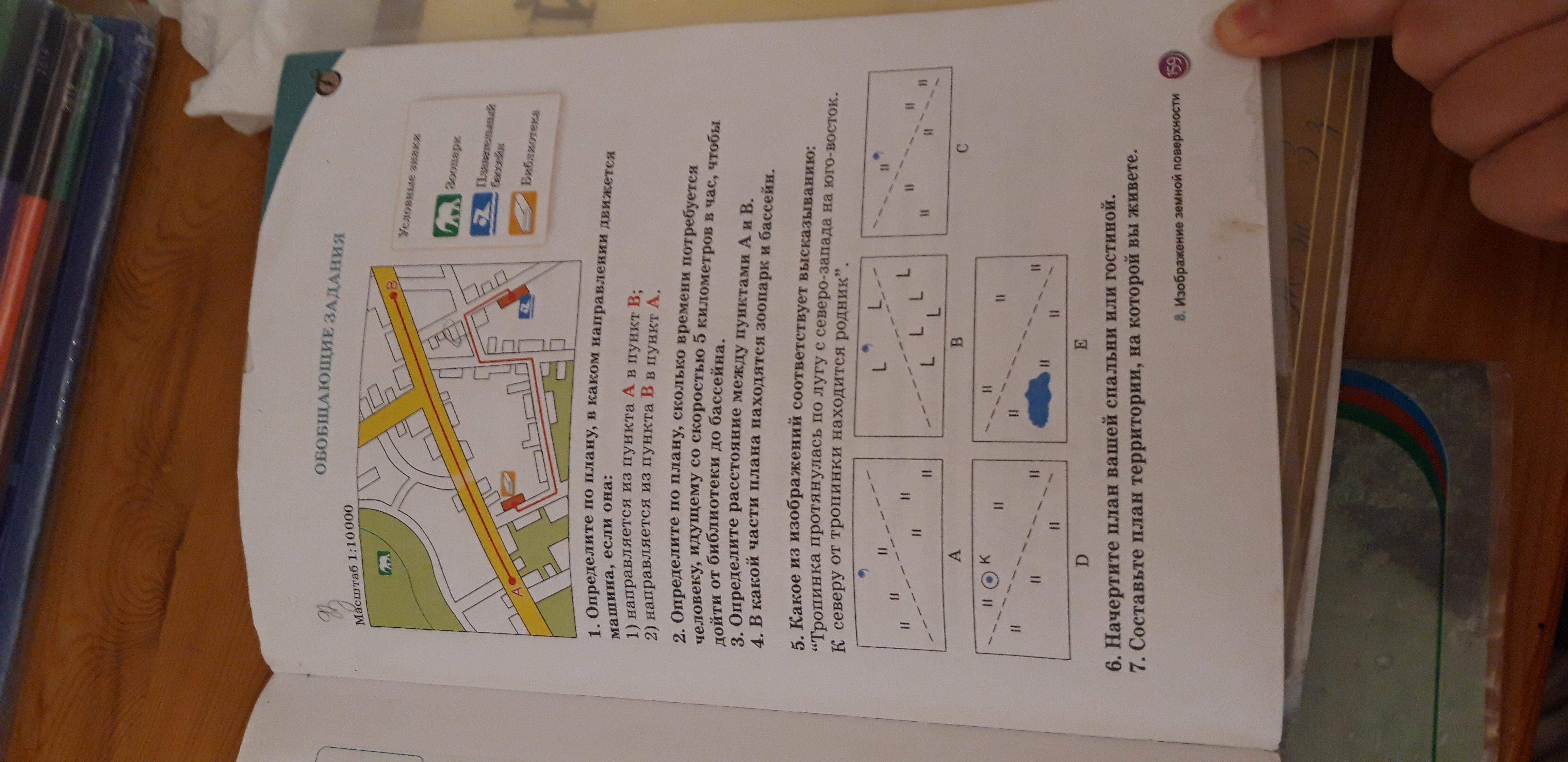 4 Зоопарк находится в северной-севевро-западной части плана, а бассейн в восточной.