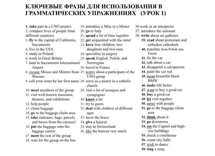 Переведите с русского на английский используя ключевые фразы урока 1.