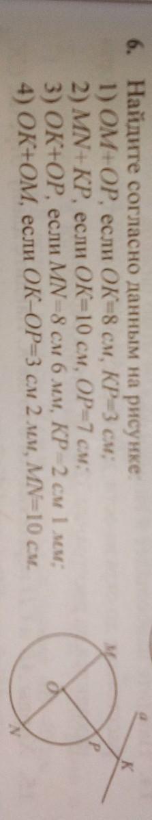 ОК=ОР+КР=4,3+2,1=6,4см