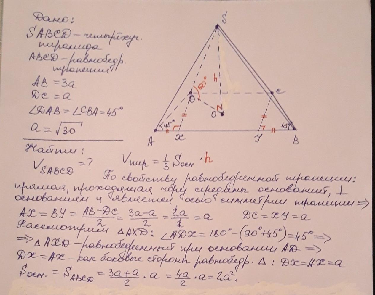 Основой пирамиды является равнобедренная трапеция, параллельные стороны которой равны