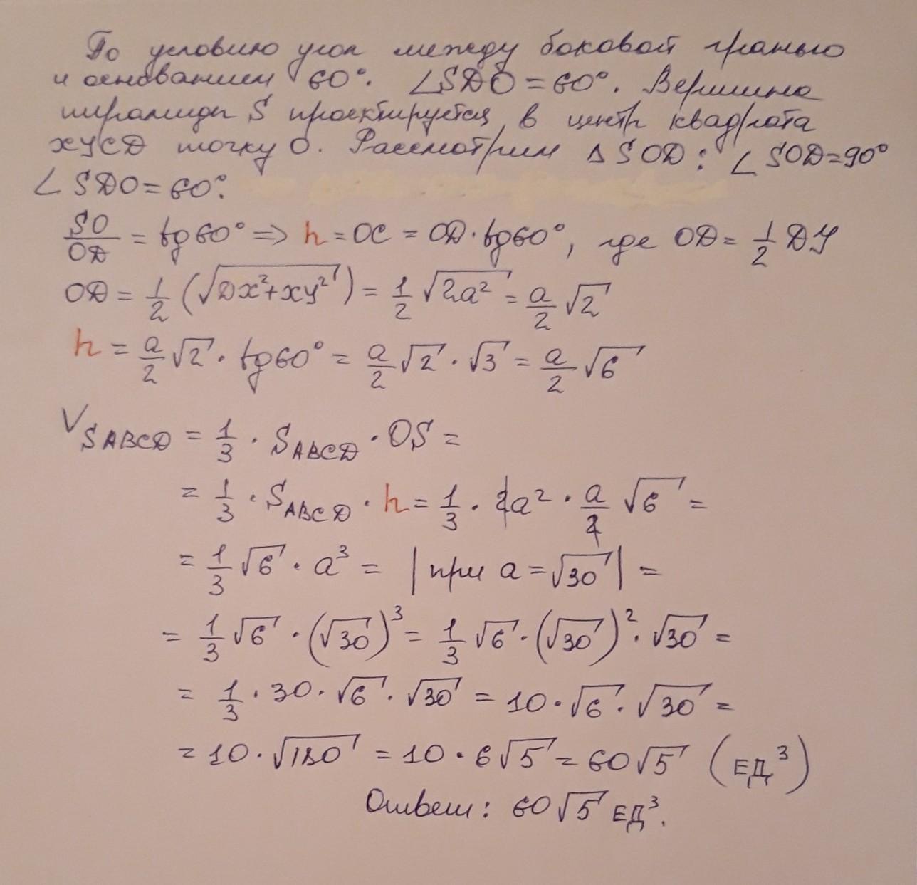 V(пир.)=60×5^1/2 ед.куб.