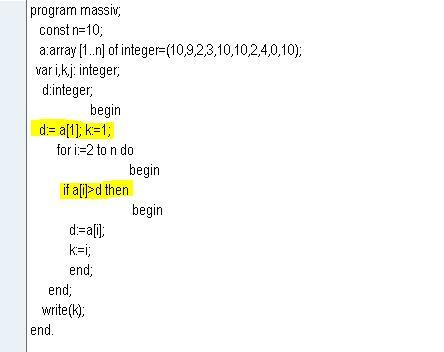 d:= a[1]; k:=1;
