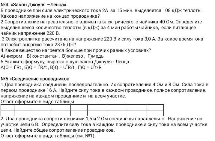 5)1. При последовательном сопротивлении ток в первом и втором проводнике одинаков и равен 16А. При этом можно найти U1=I*R1=16*4=64В, U2=I*R2=16*8=128В, Общее напр U=64+128=192В.