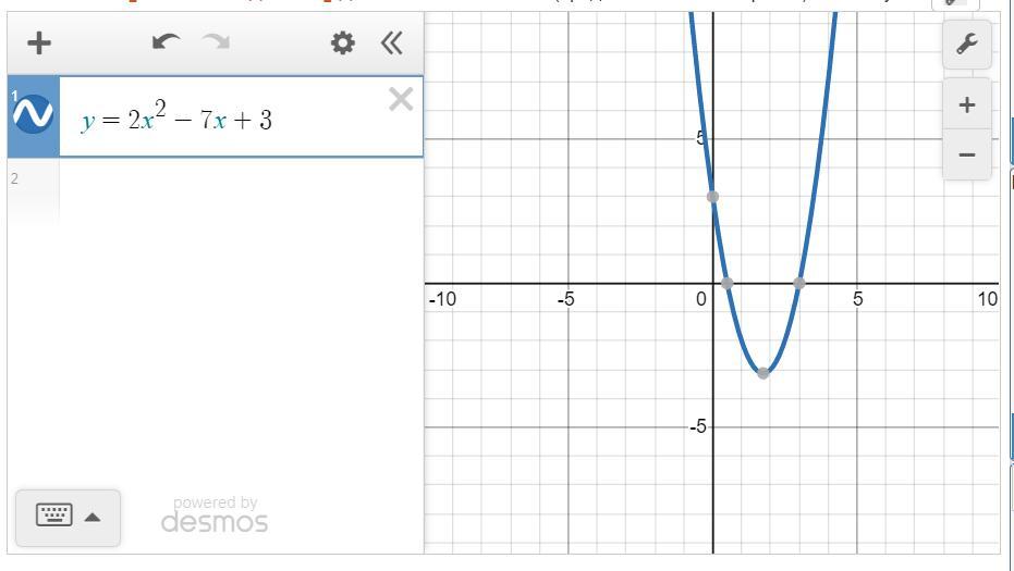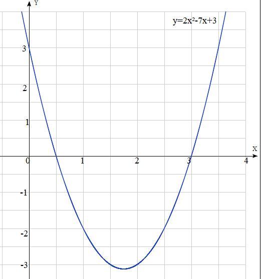 2х²-7х+3 =0 , D=25 , х₁=0,5 и х₂=3 . Точки ( 0,5 ; 0) , ( 3 ;0).