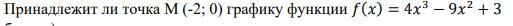 Иными словами, точка M(-2; 0) принадлежит графику, если при подставке вместо x числа -2 в итоге получим выражение, значение которого равно 0.