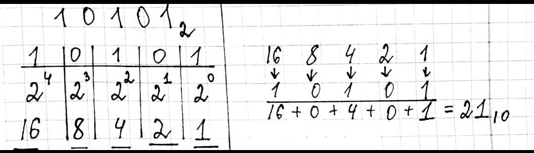 2. Двоичное число 10101 соответствует десятичному числу 21. (см. приложение)