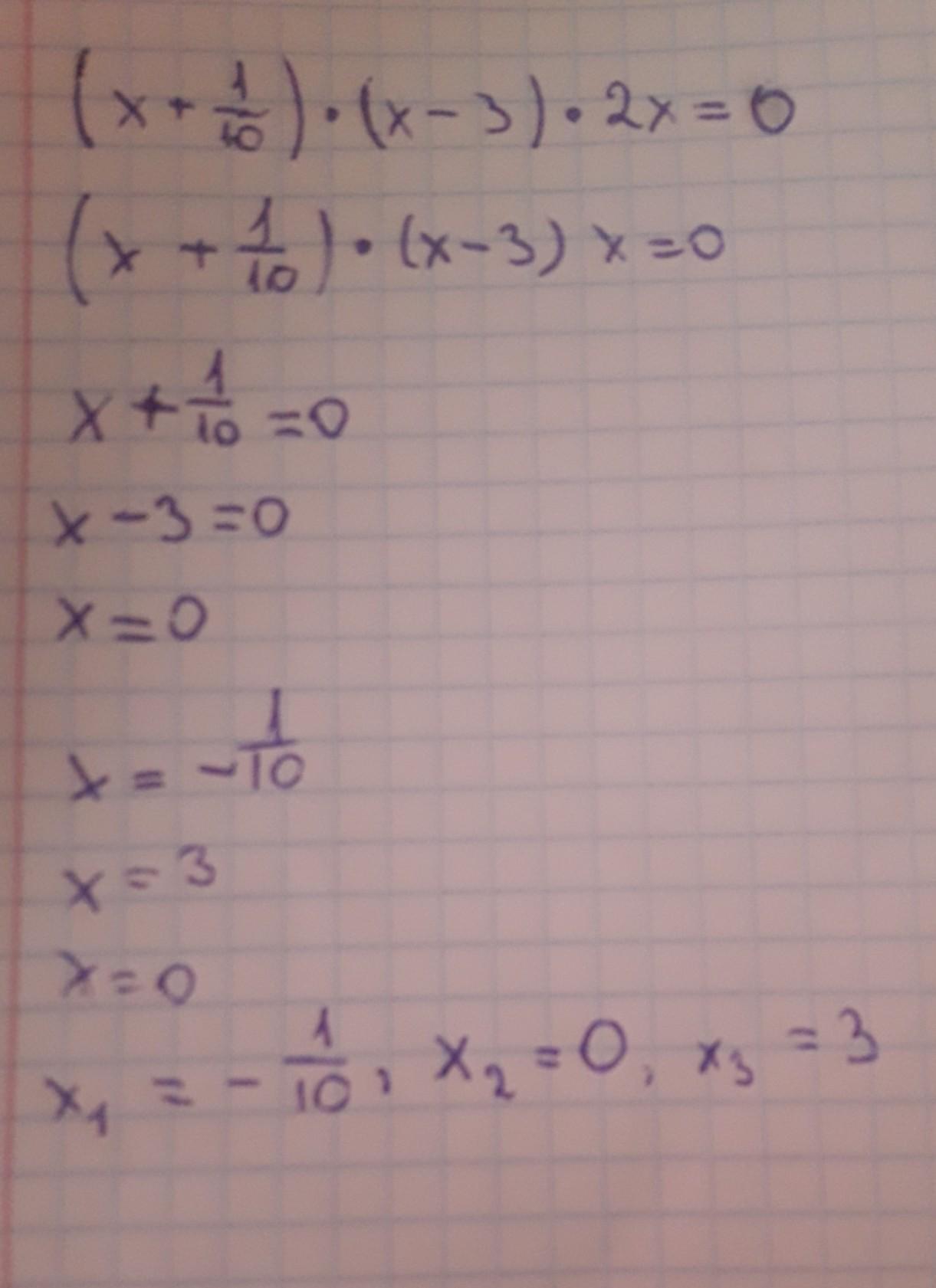 уравнение было не верным, вот правильное:(х + 0,1)∙(х – 3)^2∙х = 0