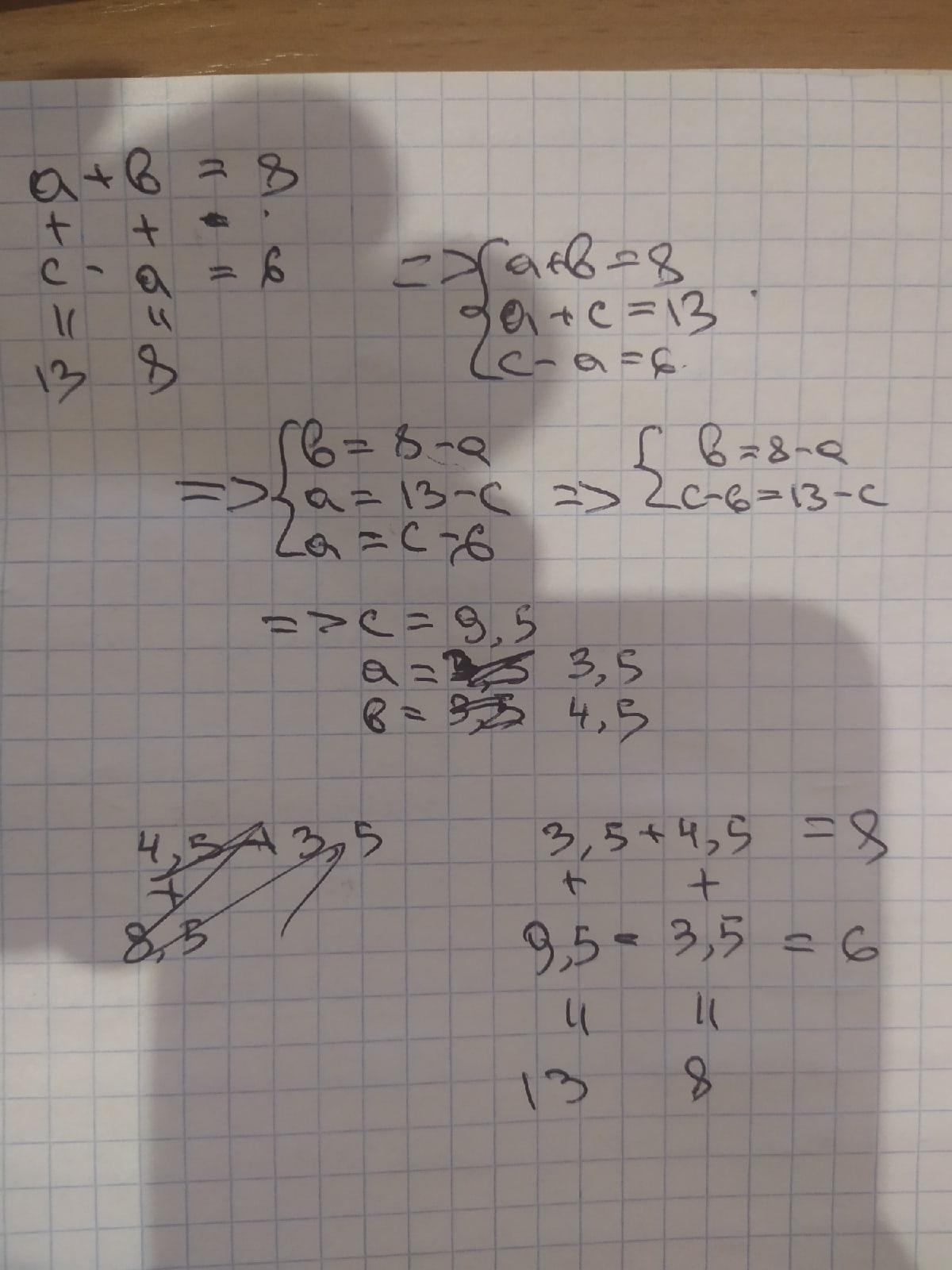 Ответ: a = 3.5, b = 4,5, c = 9,5