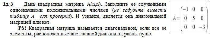 По условию матрица должна должна состоять из однозначных положительных чисел, то есть она уже по условию не может содержать нули, а значит никак не может быть диагональной. Но если уж на это пошло, вот, пожалуйста: