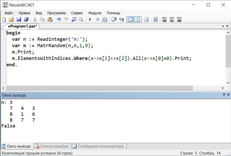 - var m := MatrRandom(n,n,1,9);