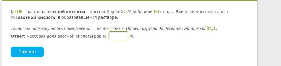 Объяснение:mвещ-ва HNO3=106*0,05=5,3г