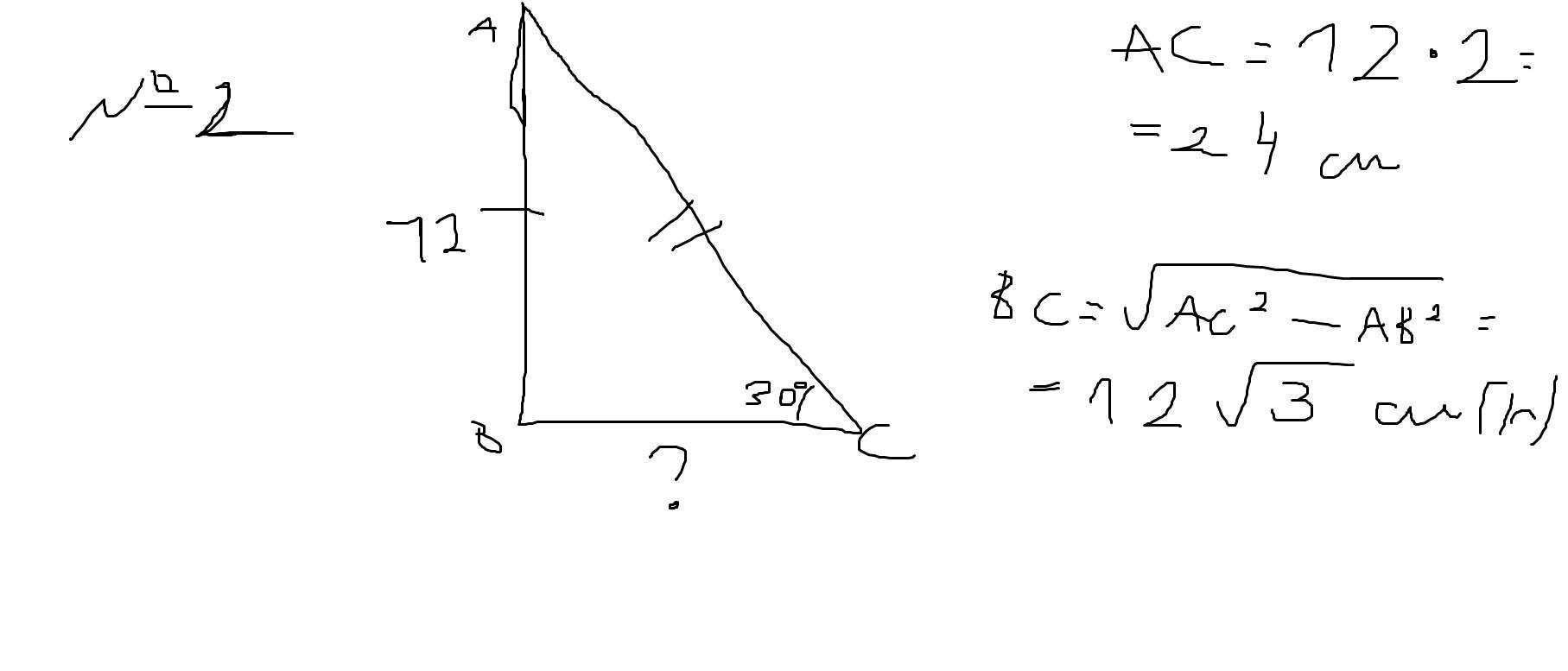 углом 30°, а его высота равна 12 см. Найдите площадь боковой