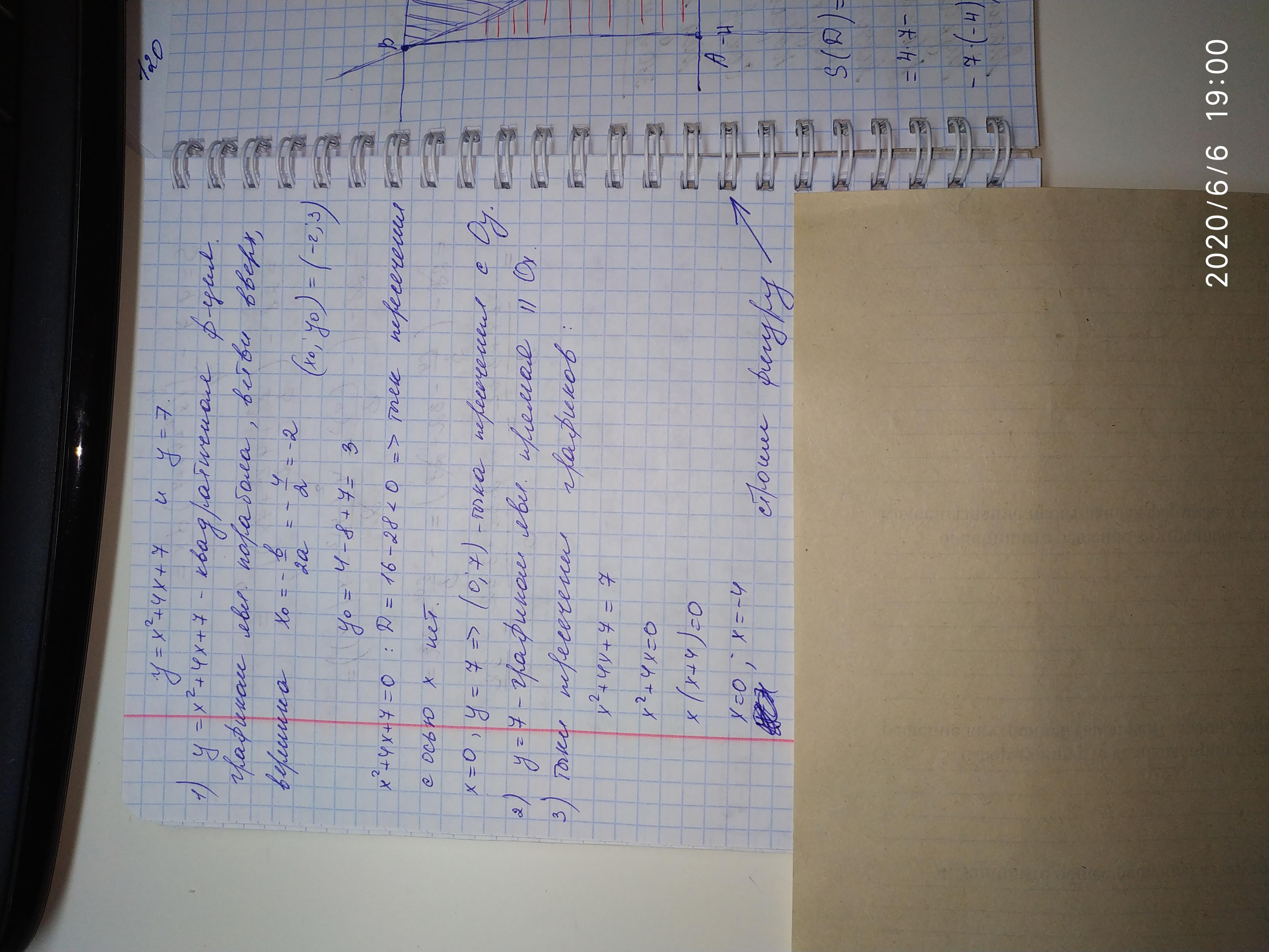 S = ∫(7 - x ² - 4х -7) dx = ∫(- x ² - 4х ) dx = -x^3 / 3 - 2x^2 | =
