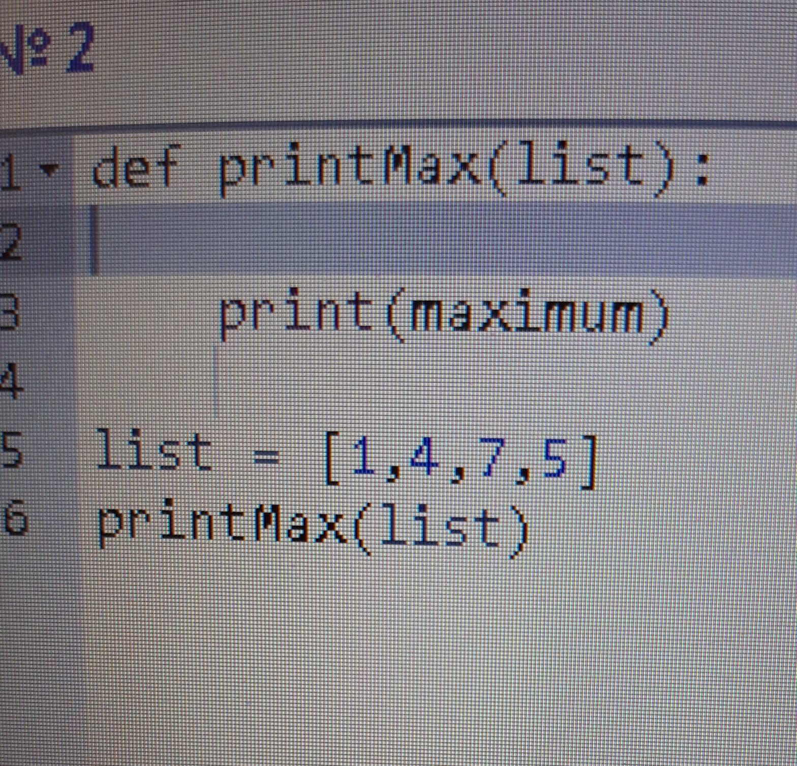 В данном коде допишите функцию printMax(list), которая принимает на вход список и выводит на экран максимальное число в списке. Заранее большое спасибо