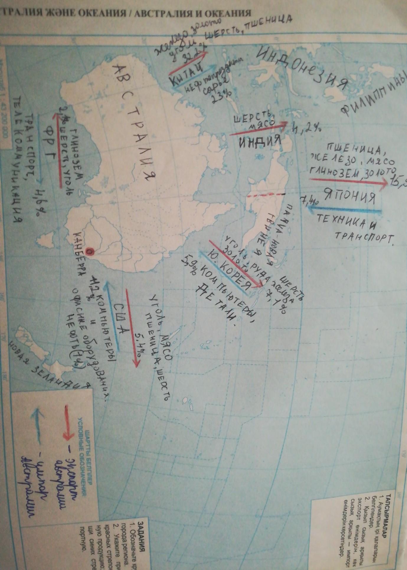 На контурной карте мира стрелками различного цвета нанесите