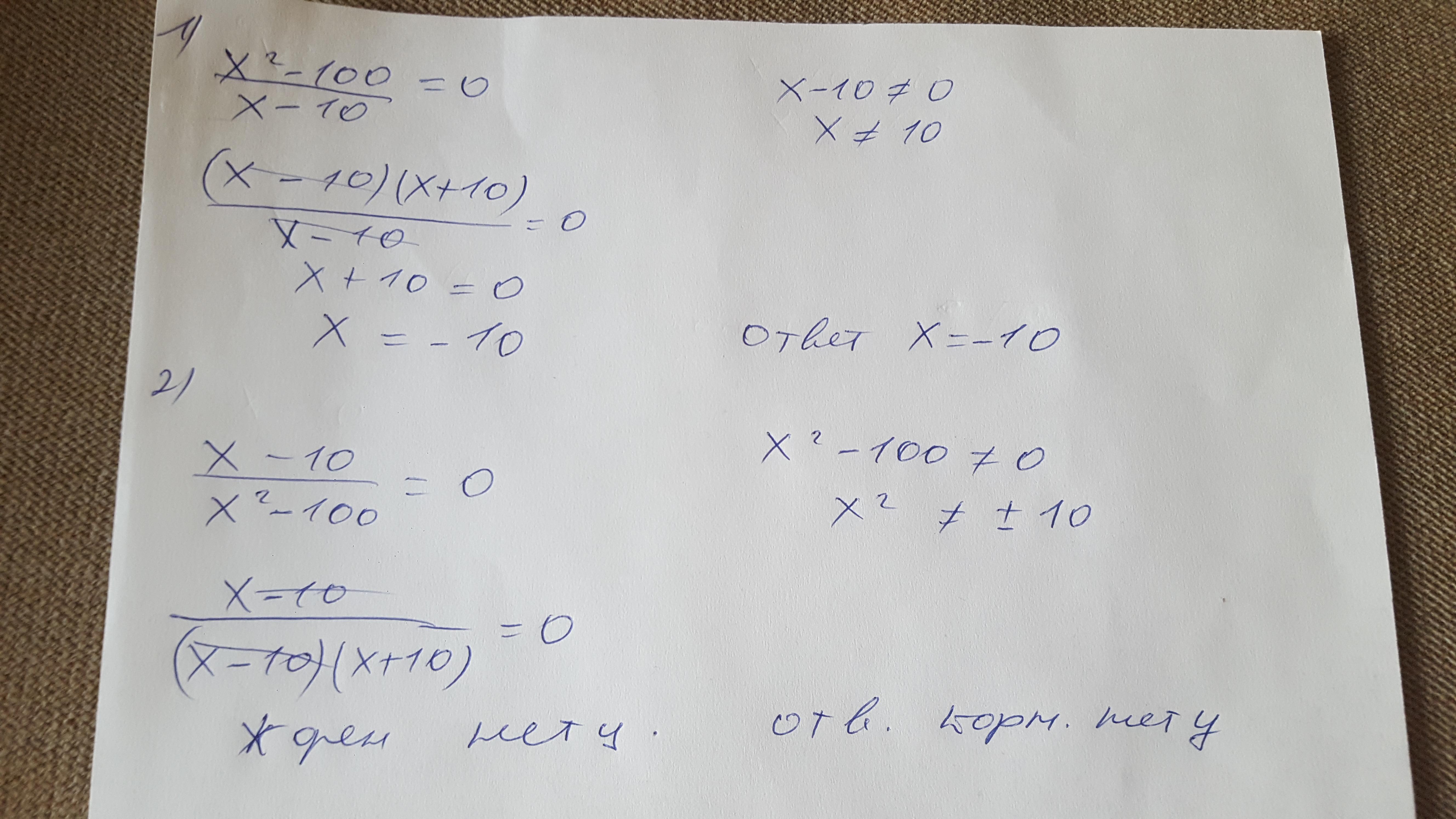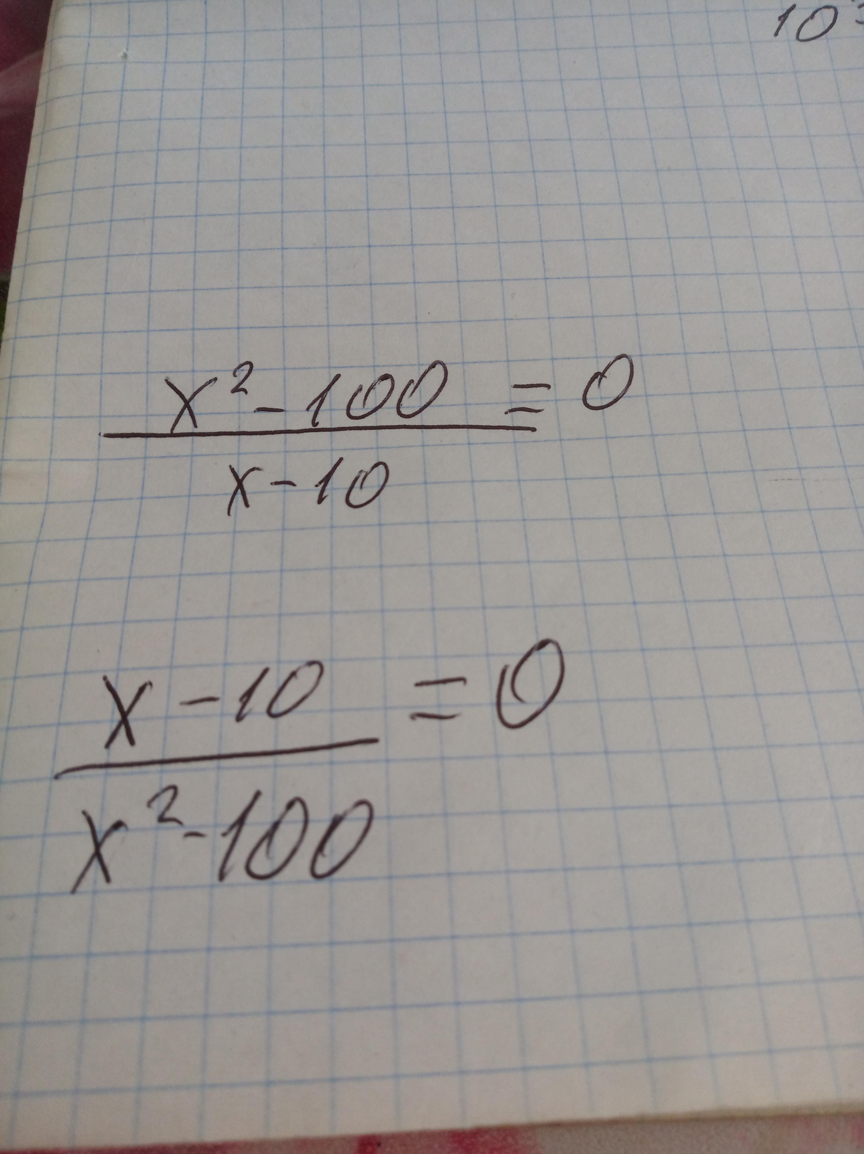 (х^2-100)÷х-10=0 (х-10)÷х^2-100=0