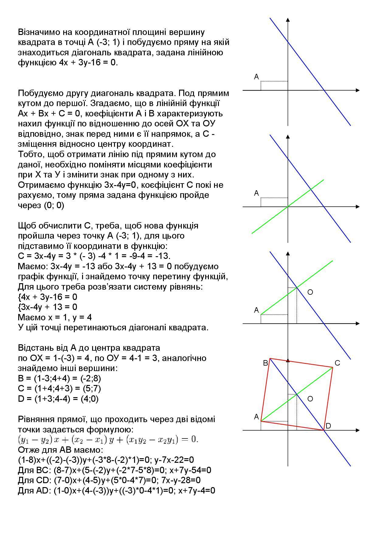 Точка А(хА; yА) – вершина квадрата АВСD, а його діагональ ВD