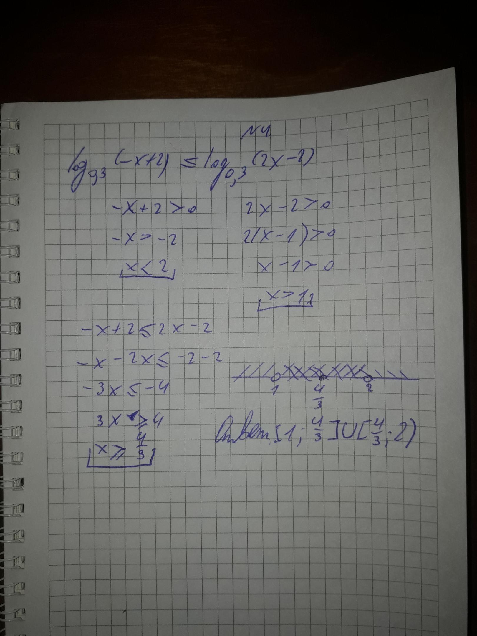 В 4 номере неравенство, поэтому нужно найти ОДЗ для логарифмов и непосредственно для самих неравенств.