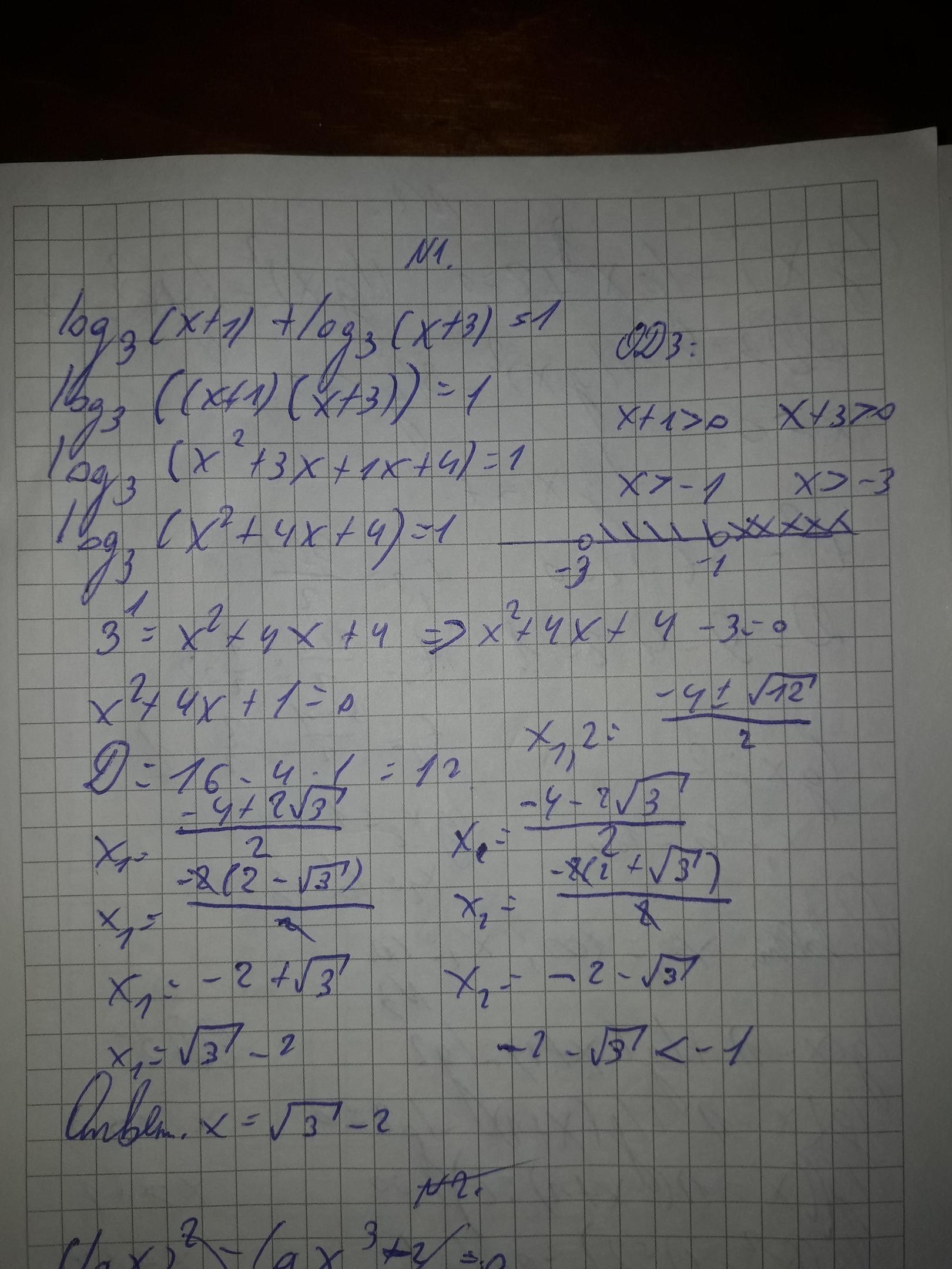 В 1 номере x2 не подходит, так как он меньше -1, а с точки зрения логарифмов - это неверно.