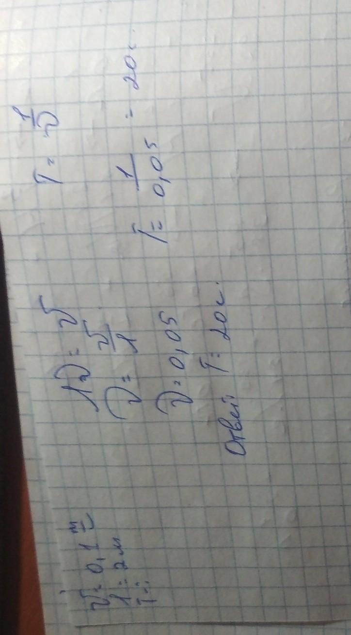 По поверхности воды со скоростью 0,1 м/с распространяется волна, длина волны которой равна 2 м. Чему равен период колебаний частиц воды?