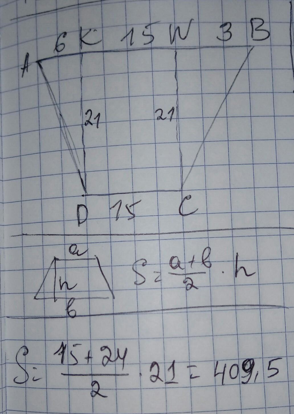 SABCD=315+31,5+63=409,5 cm² площадь данной трапеции.