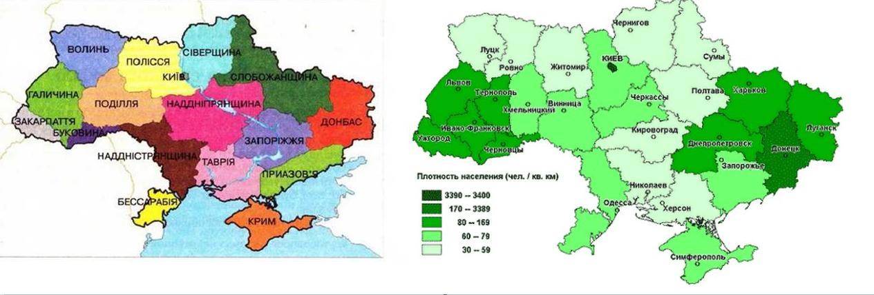 В порядку зменшення густоти населення: