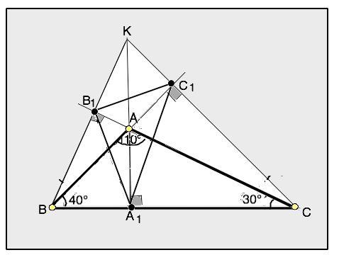В ∆ А1СС1 ∠А1=∠ВКС=70°, ∠С1=углу КВС=60°