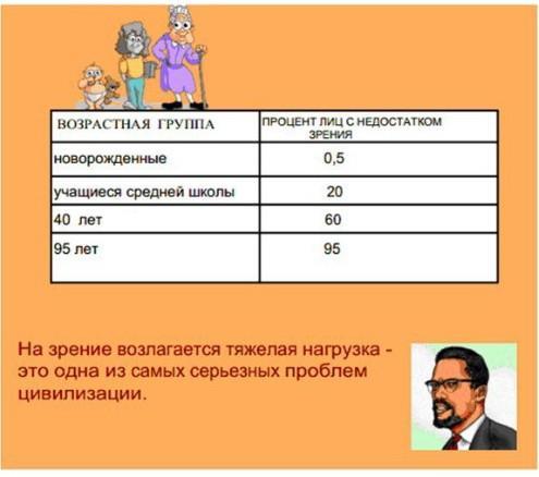 С возрастом хрусталик утолщается и теряет свою гибкость, поэтому его способность менять свою форму постепенно ухудшается. Таким образом снижение зрения происходит не сразу