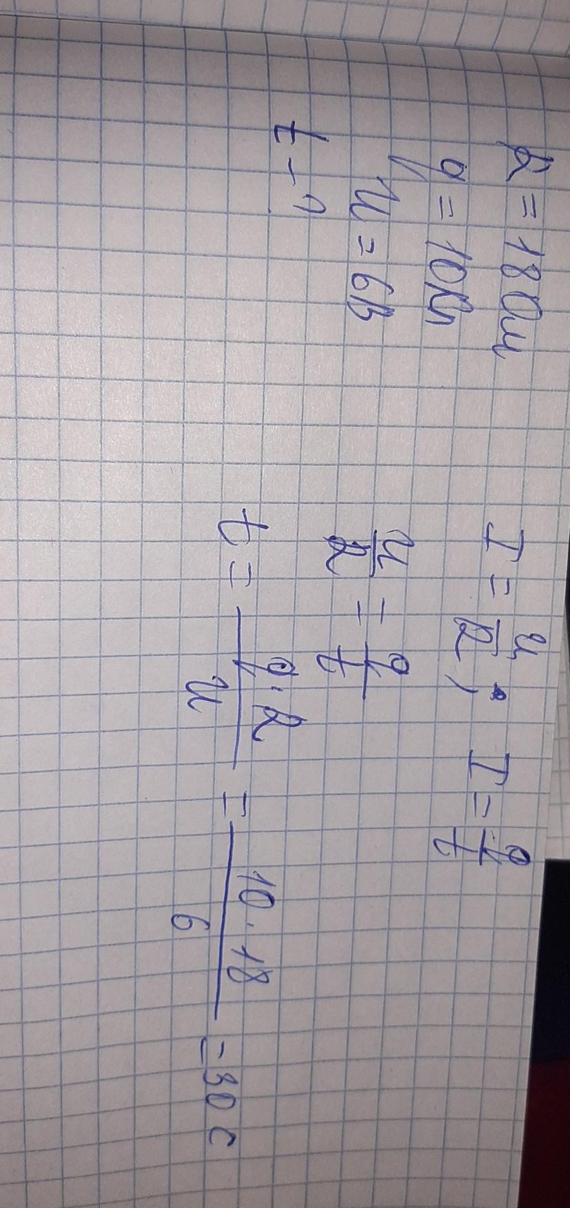 За какое время через лампу сопротивлением 18 Ом пройдет заряд, равный 10 Кл, если на лампу подается напряжение 6 В?